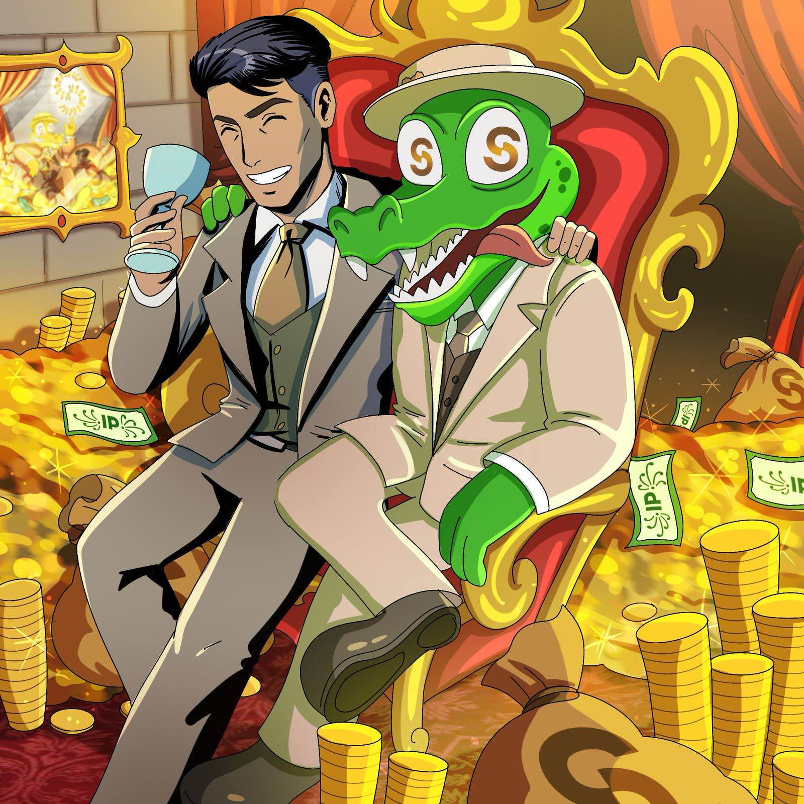 coins, silk collars, and a throne made of successful premium tokens. Now